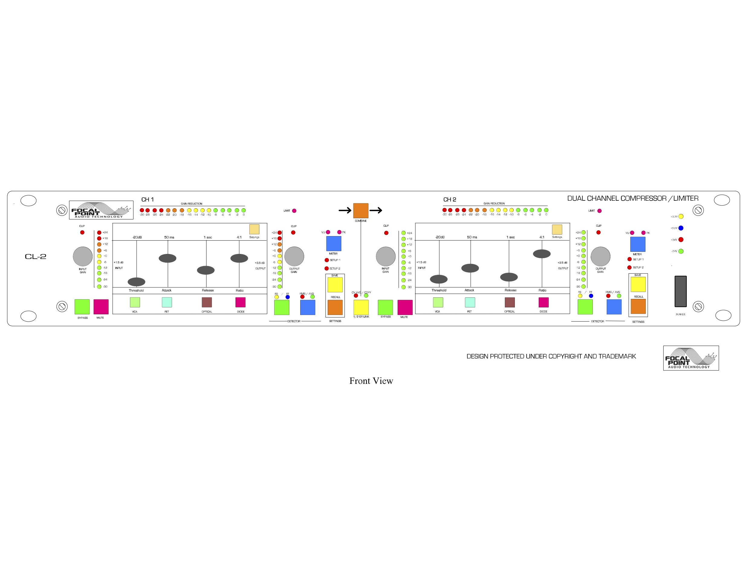 The CL-2 Compressor/ Limiter is a 2 channel unit with the ability to choose what type of gain element you want to use. You will have the choice of using a VCA, optical, or FET control. This will give you a choice of gain attenuation you would like to use and the set of characteristics that each of the gain elements has to offer. A full set of front panel options will be available. Input gain, Output gain, Threshold, Ratio, Attack, Release and Noise gate LED metering will show gain reduction, input level and output level as well as noise gate and limiter active.